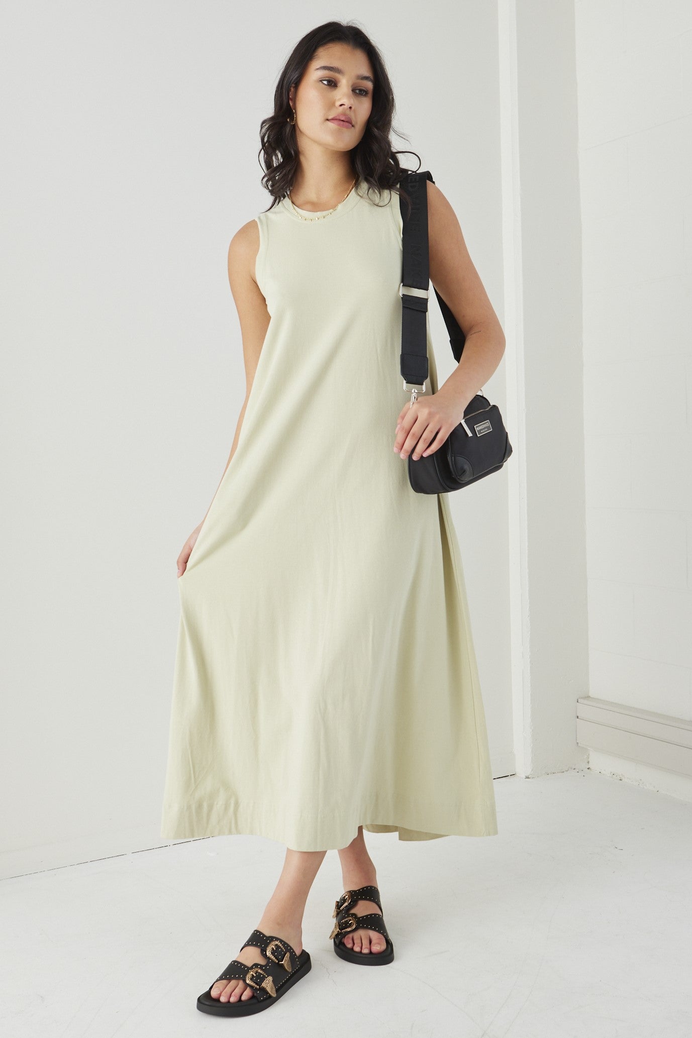 The base swing dress from Among the Brave is a must-have! Thus ultra comfy knit maxi is the perfect on-the-go summer dress. Easily dressed up or down we love with maxi with a chunky belt and white sneakers. - Swing dress - Maxi length- Pockets - 95% Cotton, 5% Elastane